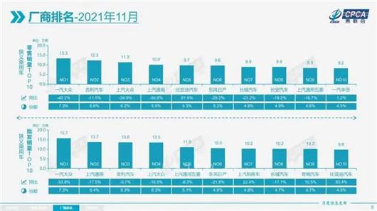 在零售榜單中,11月吉利汽車取得近年來的最好名次——亞軍,比亞迪也首次沖進前5。