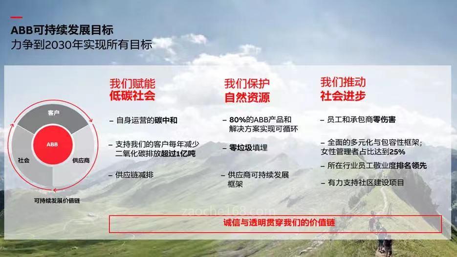 在去年的市場資本日上,ABB公布了集團2030年可持續(xù)發(fā)展戰(zhàn)略,重點關(guān)注三大領(lǐng)域:賦能低碳社會、保護自然資源、推動社會進步。ABB已取得重大進展,特別是在減排方面,旨在通過ABB技術(shù)幫助客戶每年減少二氧化碳排放超過1億噸,相當于3000萬輛汽車的年排放量。