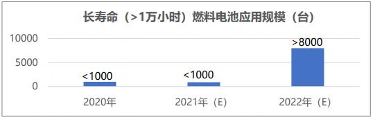 2022年,在燃料電池示范政策推動(dòng)下,壽命超過10000小時(shí)的燃料電池系統(tǒng)將實(shí)現(xiàn)在物流、長(zhǎng)途運(yùn)輸、碼頭、礦山、長(zhǎng)途客運(yùn)等長(zhǎng)途重載領(lǐng)域的多場(chǎng)景應(yīng)用。當(dāng)前,億華通、未勢(shì)、上海重塑、捷氫、濰柴動(dòng)力等多家企業(yè)發(fā)布的燃料電池系統(tǒng)可使用用壽命超過10000h。