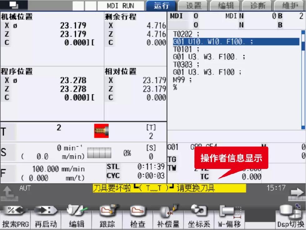 圖3 刀具壽命到達(dá)時操作者信息顯示
