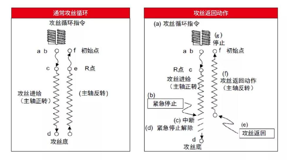在攻絲循環(huán)中因急停等中斷時,使絲錐從工件脫離的功能。