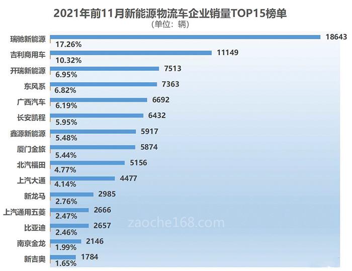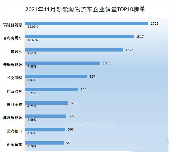 前11月新能源物流車銷量排行榜:瑞馳/吉利破萬 開瑞/東風系不相上下