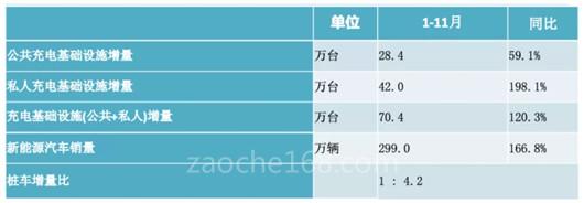 1-11月,充電基礎(chǔ)設(shè)施增量為70.4萬(wàn)臺(tái),公共充電基礎(chǔ)設(shè)施增量,同比上漲59.1%。隨車配建充電設(shè)施增量,則同比上升198.1%。截止2021年11月,全國(guó)充電基礎(chǔ)設(shè)施累計(jì)數(shù)量為238.5萬(wàn)臺(tái),同比增加55%。此外,樁車增量比則達(dá)到 1:4.2。