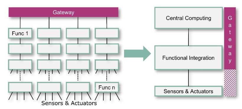 不過,功能復(fù)雜性的日益增加,要求更強大的功能聯(lián)網(wǎng)、更高的可擴展性和新功能的快速實施。因而,可擴展的分層結(jié)構(gòu)能更好地契合這些需求。圖2顯示這種變化的原理。