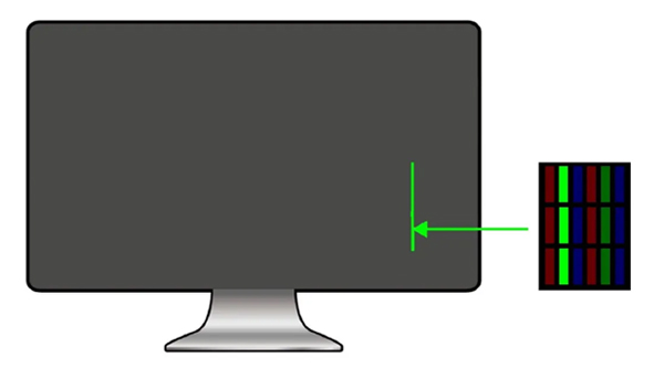 面板的每個(gè)像素由紅綠藍(lán)三元色組成,目前較為常見的壞點(diǎn),是顏色亮度高于正常值的像素亮點(diǎn),例如出現(xiàn)綠色壞點(diǎn)(如下圖所示),因此需要進(jìn)行壞點(diǎn)的修復(fù)。