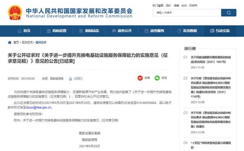 5月,發(fā)改委發(fā)布了《關(guān)于進(jìn)一步提升充換電基礎(chǔ)設(shè)施服務(wù)保障能力的實(shí)施意見(征求意見稿)》。有專家表示,該意見有望在年內(nèi)正式落地。
