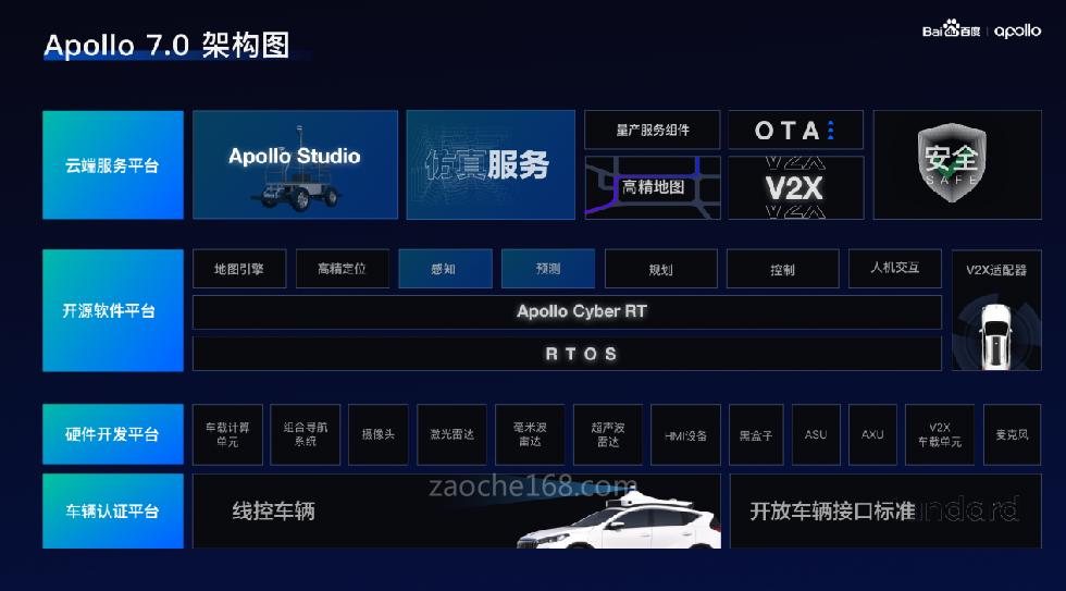 自動駕駛開放平臺作為百度多元汽車機器人落地的重要支撐,本次升級發(fā)布的Apollo7.0實現(xiàn)了從代碼到工具、從開源平臺到工具化平臺的里程碑式完整進化。在云端服務、開源軟件、硬件開發(fā)、車輛認證四大開源平臺基礎上,Apollo 7.0提供了包括一站式實踐云平臺Apollo Studio、業(yè)內(nèi)領先仿真服務、高效新模型在內(nèi)的一系列升級,不僅代碼全能力開放,更能提供自動駕駛?cè)珬9ぞ哝?,更易用、更領先、更高效的幫助開發(fā)者運用平臺能力。