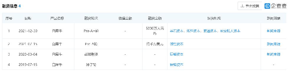 白犀牛融資歷程,圖片來源:企查查