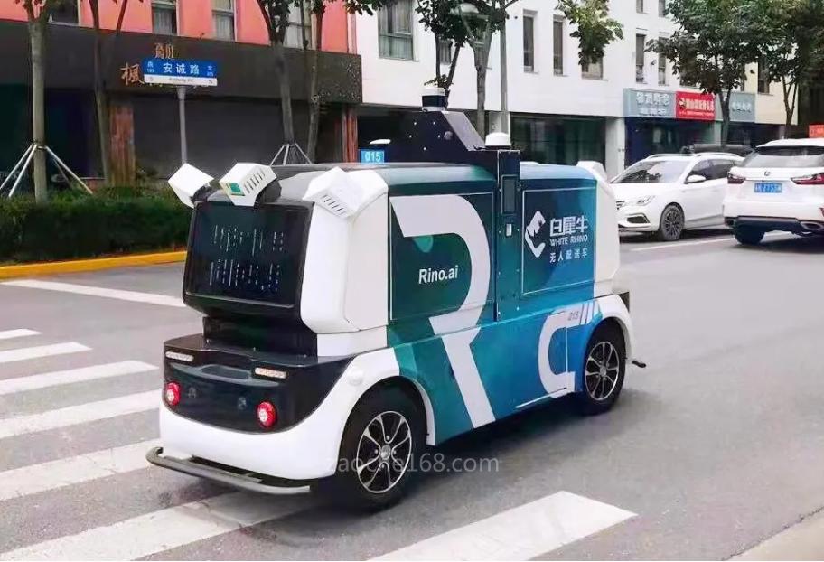 白犀牛無人配送車運(yùn)行途中,圖片來源:白犀牛無人車
