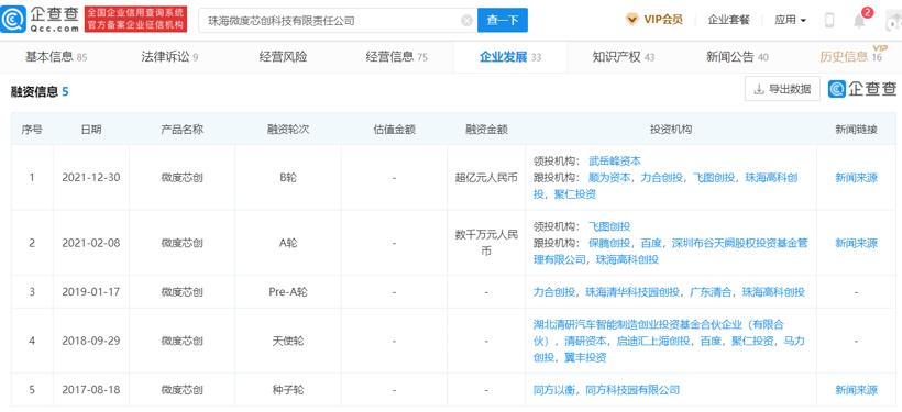12月30日,珠海微度芯創(chuàng)獲得來自武岳峰科創(chuàng)領(lǐng)投,順為資本跟投,老股東力合創(chuàng)投、飛圖創(chuàng)投、珠海高科創(chuàng)投、聚仁投資加碼跟進(jìn)的超億元B輪融資。