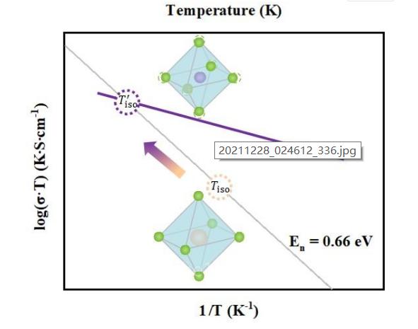 質(zhì)子擴(kuò)散需要克服被稱做活化能的能量勢壘??偟膩碚f,為了提高質(zhì)子導(dǎo)電率,應(yīng)該降低活化能。研究人員發(fā)現(xiàn),質(zhì)子導(dǎo)電率遵循凝聚態(tài)原子擴(kuò)散動(dòng)力學(xué)的Meyer-Neldel規(guī)則。當(dāng)活化能降低時(shí),電導(dǎo)率公式中的指前因子相應(yīng)減小,從而阻止提高電導(dǎo)率。研究人員進(jìn)一步發(fā)現(xiàn),當(dāng)改變材料結(jié)構(gòu)以引起活化能變化時(shí),不同活化能的電導(dǎo)率曲線在一個(gè)等動(dòng)力溫度下相交,而質(zhì)子電導(dǎo)率與活化能無關(guān),只與材料的固有性質(zhì)有關(guān)。研究人員從等動(dòng)力溫度與材料結(jié)構(gòu)的關(guān)系出發(fā),提出通過調(diào)整材料結(jié)構(gòu)來實(shí)現(xiàn)理想的等動(dòng)力溫度,可以很好地提高低溫下的質(zhì)子電導(dǎo)率。