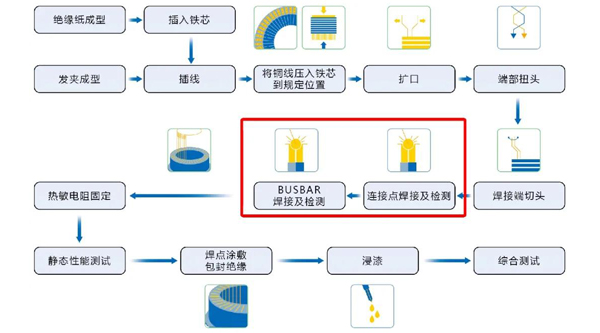 扁線電機,是定子繞組中采用扁銅線,先把繞組做成類似發(fā)卡一樣的形狀,穿進定子槽內(nèi),再在另外一端把發(fā)卡的端部焊接起來。在焊接完成后,為確認最終成型的品質(zhì),需通過大量人工,對焊點質(zhì)量進行檢查。