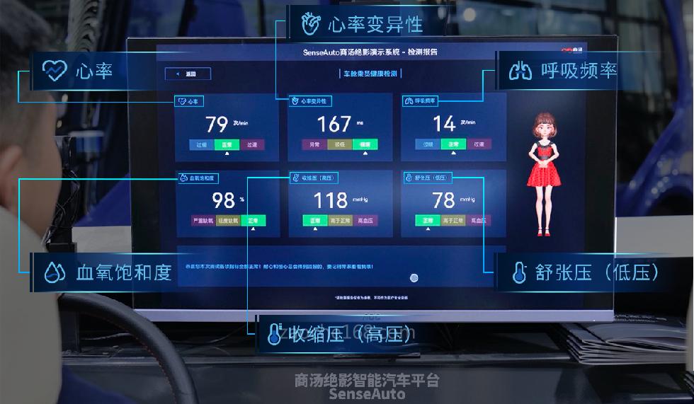 值得一提的是,基于先進的計算機視覺算法,商湯日前在廣州車展上全新發(fā)布了車艙乘員健康檢測系統(tǒng),可以實現(xiàn)最快15秒就可以測出用戶當前的心率、心率變異性、血氧飽和度、血壓和呼吸頻率,測量結果準確度接近醫(yī)療專用器械水平。