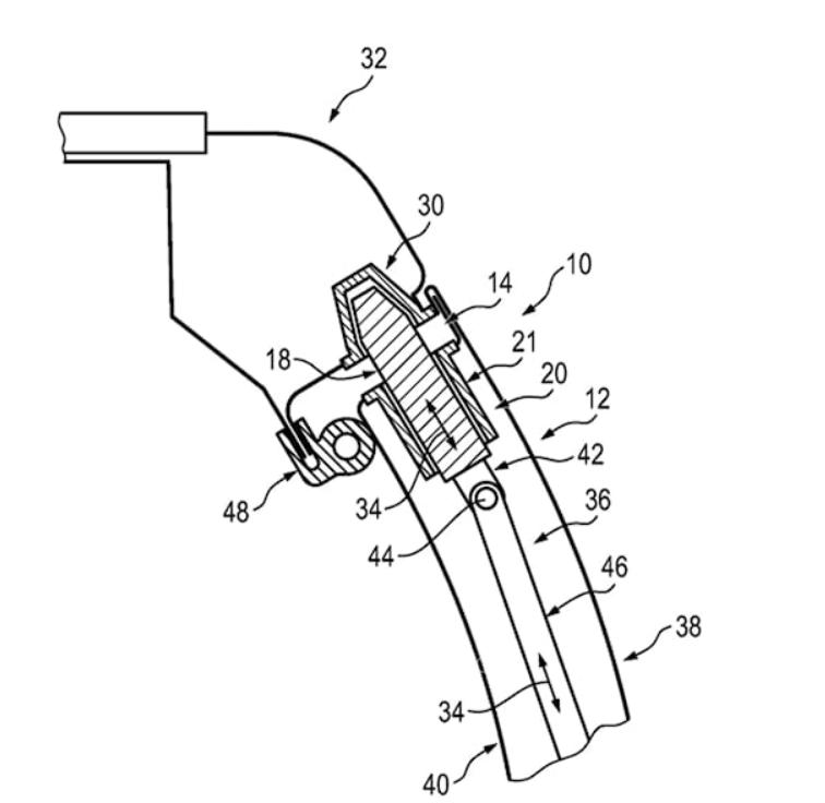 大眾向世界知識(shí)產(chǎn)權(quán)局提交、并于2021年12月下旬公布專利申請(qǐng)文件。該文件展示了此類車門的鎖定機(jī)制,暗示大眾可能正在開發(fā)Sedric量產(chǎn)版。該文件介紹“具有綜合車輛碰撞保護(hù)的鎖定系統(tǒng)裝置,[或]車輛車門裝置”,展示了在Sedric上看到的同類雙滑動(dòng)門。另外,文件中更為詳細(xì)地展示鎖定機(jī)制,及其如何安全地用于生產(chǎn)和使用。
