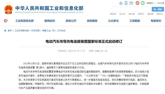 新能源汽車的里程焦慮、充電慢有望在2022年得到“救治”。1月8日,電車資源獲悉,2021年12月31日,國家標準化管理委員會正式下達工業(yè)和信息化部提出、全國汽車標準化技術(shù)委員會歸口的《電動汽車傳導充電用連接裝置 第1部分:通用要求》推薦性國家標準修訂計劃。