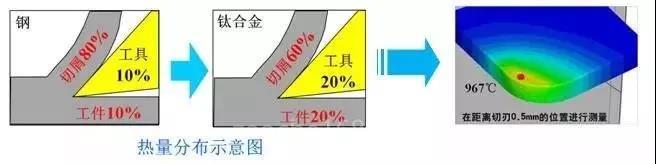 鈦合金熱傳導率低、加工硬化嚴重、與刀具的親和性高、塑性變形小等4個特點是造成鈦合金難以加工的本質原因。其被切削指數(shù)只相當于易削鋼的20%。