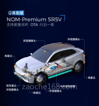 高配版NOM將基于5R5V的傳感器配置及更大算力平臺(tái),實(shí)現(xiàn)高度集成的行泊一體智能化方案。行車方面,由于有環(huán)視攝像頭做補(bǔ)充,將在擁堵等復(fù)雜場(chǎng)景下實(shí)現(xiàn)更低接管率;泊車方面,由于增加了前視遠(yuǎn)距離的攝像頭,泊車速度將有所提高。