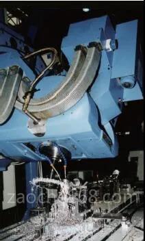 AB擺角頭部件在國外并沒有專業(yè)廠家生產(chǎn)銷售,現(xiàn)階段國外也只有意大利的PARPAS和RAMNAUD(見圖1)公司、美國的CINCINNATI公司生產(chǎn)AB擺角機床,而且只有CINCINNATI公司生產(chǎn)的是高性能的AB擺角機床,法國的FOREST-LINE(見圖2)有著多年生產(chǎn)大型AB擺角銑頭五軸機床的經(jīng)驗,其產(chǎn)品在航空工廠也有較多的應用,但由于種種原因,該公司已經(jīng)停止AB擺角銑頭及其配套機床的生產(chǎn)。