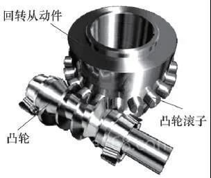 國際上也有一些機床廠商在回轉(zhuǎn)運動設計中采用一種凸輪式傳動機構。凸輪式傳動機構主要由凸輪、凸輪滾子和回轉(zhuǎn)從動件組成,凸輪滾子在回轉(zhuǎn)從動件圓周方向徑向均勻排列,凸輪為螺旋狀,作 為主動輪并與凸輪滾子相嚙合,從而帶動回轉(zhuǎn)從動 件做回轉(zhuǎn)運動。凸輪式傳動機構避免了一般蝸輪蝸桿傳動機構因磨損而造成的精度降低,并且在嚙合過程中,凸輪滾子和凸輪兩側(cè)面曲面存在預載,消除了反向間隙,提高了整個機構的精度和剛度。同時,凸輪滾子采用了滾針支撐,由滾動代替普通嚙合時的滑動摩擦,有效避免了磨損對運行精度的影響,使整個傳動機構更可靠,效率更高。但是,由于凸輪型面復雜,加工工藝難度較大,所以目前我國凸輪傳動機構的生產(chǎn)水平與國外的差距較大,凸輪傳動機構主要靠進口,受到出口限制和價格因素的嚴重制約,因此,該傳動方式不在考慮范圍內(nèi)。