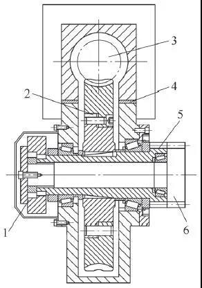 1-調(diào)整機構 2-蝸輪 3-蝸桿 4-調(diào)整墊 5-外齒輪軸 6-內(nèi)齒輪軸