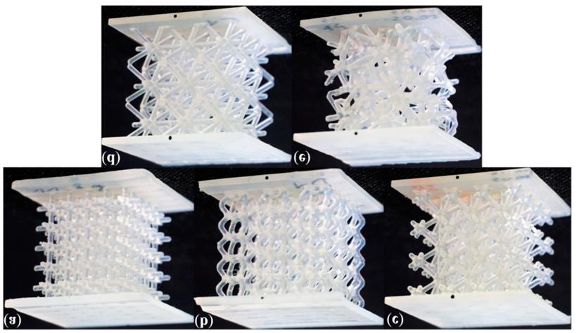 結(jié)果表明,相對密度分布均勻的一致結(jié)構(gòu),在所有打印形狀中具有最高的初始剛度。但是,相對密度不同的漸變設(shè)計,將顯著提高要承受高壓應(yīng)力晶格的剛度和吸能能力。