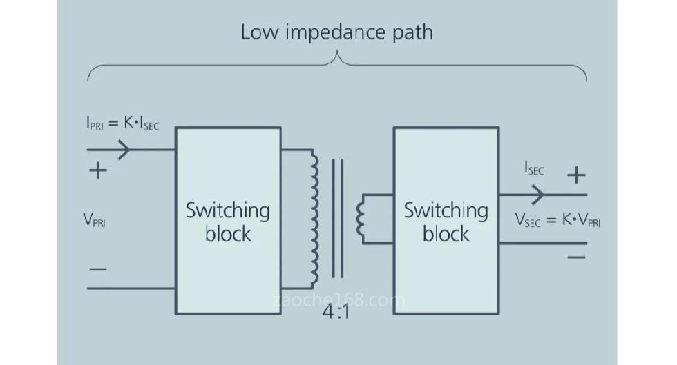 Vicor BCM? 母線轉(zhuǎn)換器采用零電壓、零電流開關(guān)(ZVS/ZCS)技術(shù),其工作頻率比常規(guī)轉(zhuǎn)換器高,因此其響應(yīng)速度比物理電池快。例如,BCM6135 與常規(guī) ZVS/ZCS 諧振轉(zhuǎn)換器不同,工作頻率為 1.2MHz,該 BCM 在窄帶頻率下工作(圖 3)。BCM 的高頻率工作可針對負(fù)載電流的變化以及從輸入到輸出的低阻抗路徑提供快速響應(yīng)。固定比率轉(zhuǎn)換、雙向工作、快速瞬態(tài)響應(yīng)(每秒超過 8MA)和低阻抗路徑相結(jié)合,可幫助 BCM 使高壓電池看起來像 48V 電池,我們將其稱為“變壓”。與常規(guī)轉(zhuǎn)換器相比,這種對電源進(jìn)行變壓的功能既是重要優(yōu)勢,也是重要的差異化特性。