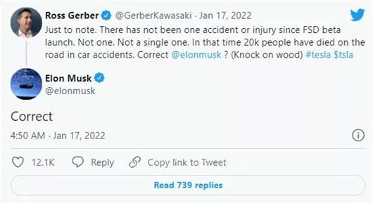 “自從FSD測試版上線以來,就沒有發(fā)生過任何一起傷亡事故,一個(gè)都沒有!而同期的(美國),有2萬人死于車禍。是不是這樣的?”