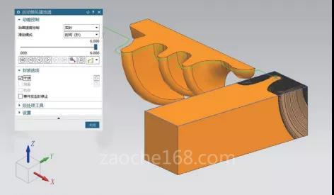 選擇分析→運動→干涉,指定類型為“創(chuàng)建實體”;在部件導航器中選擇第一組為零件、第二組為刀具;設置模式為精確實體,單擊“確定”完成干涉設置。