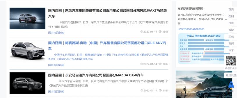 中國汽車召回網(wǎng)(圖片來源:qiche365.org.cn)