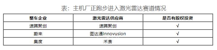 1月10日,車規(guī)級MEMS激光雷達解決方案提供商一徑科技正式宣布完成數億元Pre-C輪融資。本輪融資由小鵬汽車領投,上汽集團旗下尚頎資本、東風交銀汽車基金、老股東英特爾資本繼續(xù)加注。對于部分車企而言,一邊選擇有前景的供應商,一邊通過股權投資的方式獲得資本層面的收益,與供應商深度捆綁,能夠保障產品供應與協(xié)同研發(fā)。