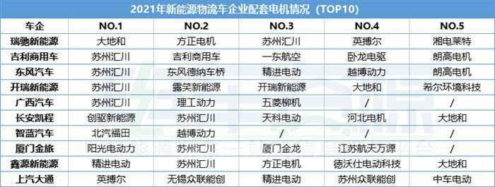 2021年新能源物流車電機裝機量及排名,主要有以下特點: