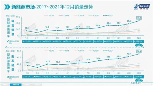 數(shù)據(jù)不會(huì)說(shuō)謊,據(jù)乘聯(lián)會(huì)相關(guān)統(tǒng)計(jì)顯示,剛剛過(guò)去的12月,新能源乘用車批發(fā)銷量達(dá)到50.5萬(wàn)輛,同比增長(zhǎng)138.9%,環(huán)比增長(zhǎng)17.8%。1-12月新能源乘用車批發(fā)331.2萬(wàn)輛,同比增長(zhǎng)181.0%。