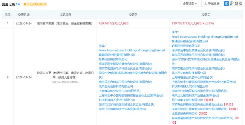 與此同時,芯視界微電子的工商信息也于近日發(fā)生變更,注冊資本由180.25萬元增至190.79萬元,增幅5.79%,同時新增多名股東,其中包括歌爾微電子、比亞迪等A股知名公司。