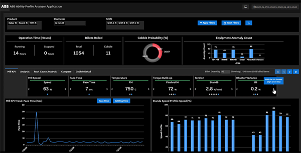 流程工業(yè)的數(shù)智化核心是利用數(shù)據(jù)創(chuàng)造價(jià)值。在該項(xiàng)目中,ABB通過(guò)對(duì)設(shè)備、控制回路、現(xiàn)場(chǎng)儀器儀表、生產(chǎn)工序、生產(chǎn)工藝、原料數(shù)據(jù)和檢化驗(yàn)數(shù)據(jù)的治理和關(guān)聯(lián),在數(shù)據(jù)中心建立完備的數(shù)字化設(shè)備、數(shù)字化過(guò)程和數(shù)字化鋼卷。涵蓋了從毫秒級(jí)到秒、分鐘級(jí)的各種有效信息,滿足高線速度快,跟蹤要求高的需求。同時(shí)運(yùn)用大數(shù)據(jù)分析技術(shù)把專家的經(jīng)驗(yàn)系統(tǒng)化,為高線生產(chǎn)狀態(tài)感知、決策建議、卓越運(yùn)營(yíng)提供有力支撐。