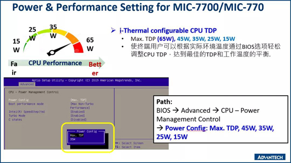 研華 MIC-770 / 7700系列的 iThermal設(shè)計(jì),透過BIOS快速調(diào)整CPU功耗,從而使性能(功耗)、溫度、成本達(dá)到平衡,輕松應(yīng)對(duì)各種嚴(yán)苛的工業(yè)環(huán)境,有更好的用戶體驗(yàn)。研華的MIC-770 / 7700系列產(chǎn)品將持續(xù)滿足工廠和機(jī)械自動(dòng)化領(lǐng)域的應(yīng)用,滿足用戶對(duì)擴(kuò)展能力和成本效益的需求。