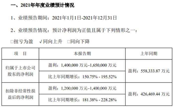 近日,寧德時代新能源科技股份有限公司(簡稱:寧德時代)披露業(yè)績預告,預計2021年凈利潤為140億元-165億元,同比增長150.75%-195.52%。財報顯示,寧德時代2021年前三季度凈利潤為77.51億元,同比增長130.90%。這已是寧德時代凈利潤連續(xù)第三年創(chuàng)下歷史新高。
