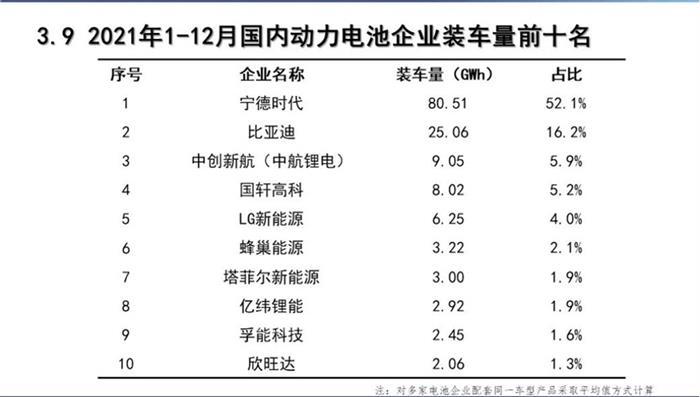 動力電池板塊,中國汽車動力電池產業(yè)創(chuàng)新聯盟公布數據顯示,2021年全年我國動力電池裝車量累計154.5GWh,同比累計增長142.8%,其中寧德時代全年裝機量超80GWh,以52.1%市場占有率穩(wěn)居全國第一。