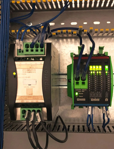 穆?tīng)栯娮釉骷策m用于控制柜。Emparro開(kāi)關(guān)電源,不但設(shè)計(jì)緊湊,而且保證最大可靠性高效率供電。Mico Pro系統(tǒng)模塊,可以實(shí)現(xiàn)更加智能的24V直流電源管理,借助Mico Pro能夠調(diào)整當(dāng)前的電流監(jiān)測(cè),即使在空間和成本有限的情況下,也能游刃有余。Mico Pro系統(tǒng)模塊持續(xù)監(jiān)測(cè)所有的負(fù)載和控制電流,并在正確的時(shí)間識(shí)別關(guān)鍵時(shí)刻狀態(tài)。這保證了最佳的機(jī)器可用性,同時(shí)集成的電位分配大大簡(jiǎn)化了開(kāi)關(guān)柜的布線。