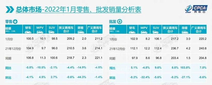 2月14日,全國(guó)乘用車市場(chǎng)信息聯(lián)席會(huì)(以下簡(jiǎn)稱“乘聯(lián)會(huì)”)發(fā)布的最新銷量數(shù)據(jù)顯示,2022年1月,乘用車市場(chǎng)零售銷量為209.2萬輛,同比下降4.4%。