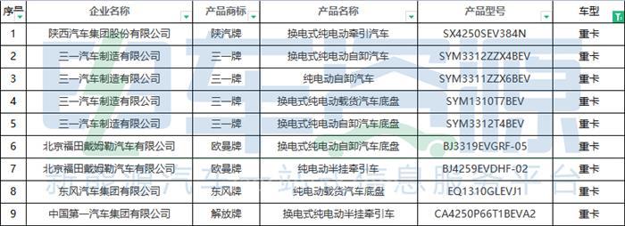 71款新能源重卡中,物流重卡(包括牽引車(chē)、自卸車(chē)以及載貨類重卡)29款,環(huán)衛(wèi)類重卡(包括自卸垃圾車(chē))35款,工程類專用重卡7款。據(jù)電車(chē)資源統(tǒng)計(jì),本批次新能源牽引車(chē)8款,自卸類重卡12款(本批次無(wú)自卸垃圾車(chē))。具體如下: