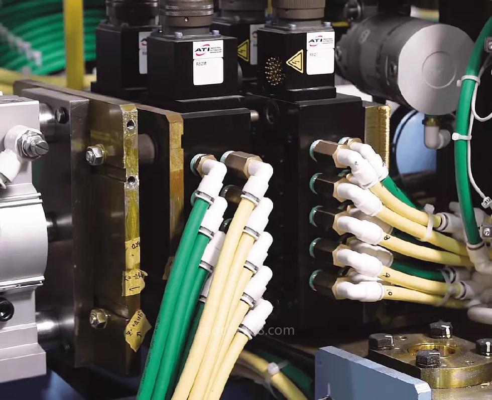 ATI的順從介質(zhì)連接器是KTH的焊接線的理想選擇。ATI的順從介質(zhì)連接器適用于需要快速連接并通過水、電、氣等介質(zhì)信號(hào)的夾具應(yīng)用。順從功能能夠提供較大的工具誤差補(bǔ)償。ATI的順從介質(zhì)連接器的模塊化設(shè)計(jì),可以使夾具快速有效切換和鏈接,豐富的模塊庫使得UC連接器可以兼容不同的總線協(xié)議。對(duì)于KTH的這個(gè)工作站,ATI配置了一個(gè)順從介質(zhì)連接器和一個(gè)32針腳的離散 I / O模塊,可以很容易地集成到現(xiàn)有的線路中,替換了人工手動(dòng)連接和斷開電纜航插的工作。