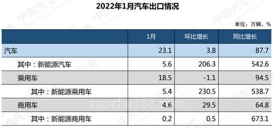 值得一提的是,汽車出口繼續(xù)延續(xù)向好發(fā)展態(tài)勢,月度出口數(shù)量處于歷史次新高水平。1月,汽車企業(yè)出口23.1萬輛,環(huán)比增長3.8%,同比增長87.7%。其中,乘用車出口18.5萬輛,環(huán)比下降1.1%,同比增長94.5%;商用車出口4.6萬輛,環(huán)比增長29.5%,同比增長64.8%。此外,新能源汽車出口增長貢獻(xiàn)度達(dá)到43.7%。