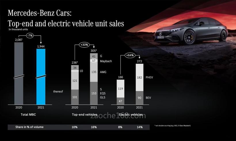 高端車系的優(yōu)異表現(xiàn)是業(yè)績增長的主要原因之一。2021年,包含梅賽德斯-邁巴赫、梅賽德斯-AMG、G級車、S級轎車、GLS SUV和EQS在內(nèi)的高端車系,創(chuàng)下新的銷量紀錄。