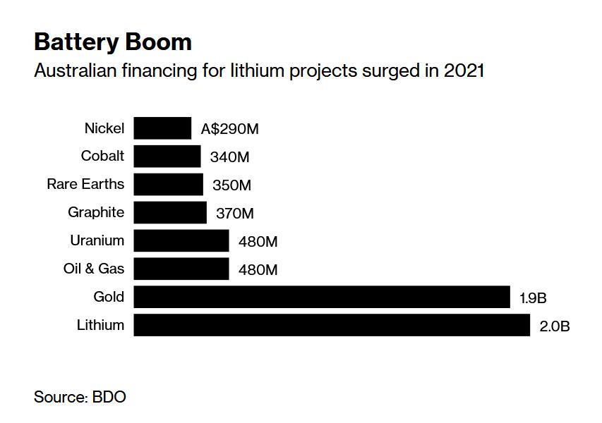 由于鋰生產(chǎn)商爭相將新資源引入鋰行業(yè),以幫助降低未來幾年預(yù)計(jì)會(huì)出現(xiàn)的供應(yīng)缺口,現(xiàn)金大量流入鋰行業(yè)。鋰資源在吸引資本方面超過了黃金,并在2021年獲得了超過20億澳元的融資。Liontown Resources目前正在西澳大利亞開發(fā)一個(gè)鋰礦項(xiàng)目,該公司通過發(fā)行股票籌集了4.5億澳元,成為2021年第四季度該國最大的單筆融資。