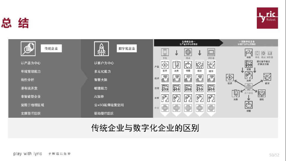傳統(tǒng)企業(yè)和數(shù)字化企業(yè)的區(qū)別在于過去是以產(chǎn)品為中心,但是數(shù)字化企業(yè)不能這樣,將來必將以客戶為中心。因此就有了這樣的轉變,包含了以客戶為中心的集中式的變化,以客戶的痛點為方案提供方的關切點。
