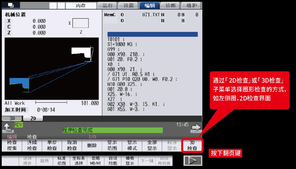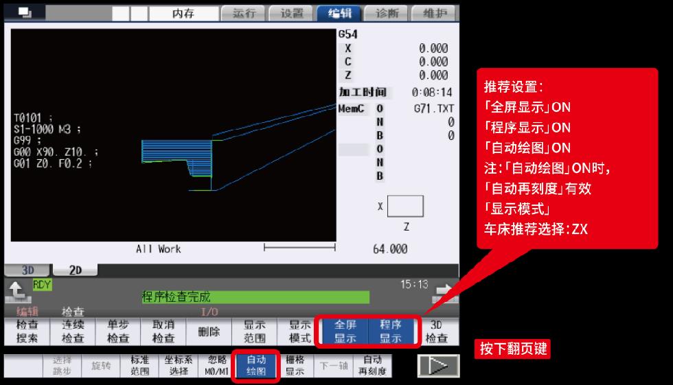 圖形檢查(2D)是在不執(zhí)行自動運行的狀態(tài)下,僅通過描圖對加工程序軌跡進行確認的功能,從而可高速準(zhǔn)確地繪圖,完成加工程序檢查,另外可以對加工時間預(yù)估。