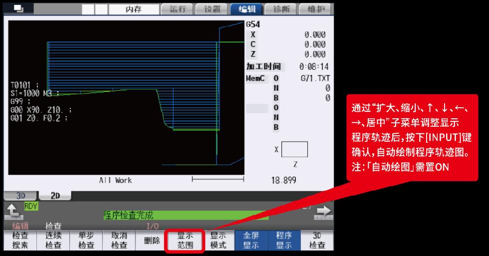 可通過「顯示范圍」子菜單,調(diào)整顯示程序軌跡的大小和位置。