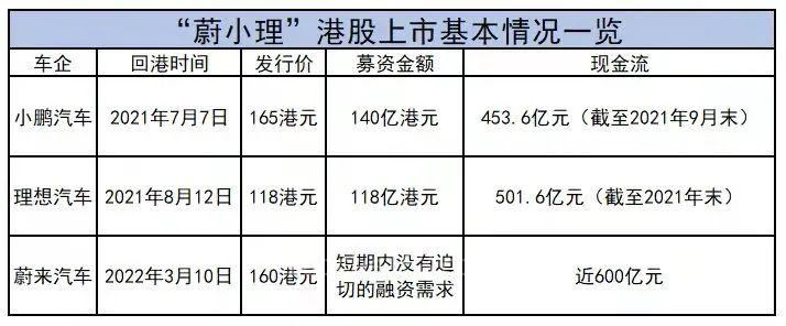與此同時(shí),蔚來(lái)還強(qiáng)調(diào),公司目前擁有充足的現(xiàn)金儲(chǔ)備,短期內(nèi)沒有迫切的融資需求。為此,蔚來(lái)還披露了目前的資金狀況,截至2021年9月30日,蔚來(lái)現(xiàn)金儲(chǔ)備共計(jì)約470億元人民幣。同年11月,蔚來(lái)還通過美股ATM增發(fā)(At-The-Market Offering),籌集了約156億港元的融資。而這個(gè)數(shù)字和小鵬、理想赴港募資額相當(dāng),分別為140億港元和118億港元。