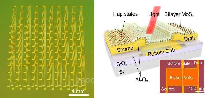“要完全復(fù)制視網(wǎng)膜的視覺適應(yīng)功能,還有很長(zhǎng)的路要走,”Chai解釋說。“為了實(shí)現(xiàn)這一目標(biāo),我們?cè)O(shè)計(jì)了一種使用超薄半導(dǎo)體的光電晶體管型視覺傳感器,它可以通過施加不同的柵極電壓來控制同一設(shè)備中的暗適應(yīng)和明適應(yīng)程度。通過這種方式,我們模擬了視網(wǎng)膜中的光感受器和水平細(xì)胞,并成功實(shí)現(xiàn)了具有199 dB感知范圍的仿生傳感器內(nèi)視覺適應(yīng)裝置?!?BR> Chai及其同事開發(fā)的仿生視覺傳感器基于由超薄半導(dǎo)體材料(即二硫化鉬)制成的光電晶體管打造。這些光電晶體管具有多種電荷陷阱狀態(tài),可在不同的柵極電壓下捕獲或釋放溝道內(nèi)的電子。
