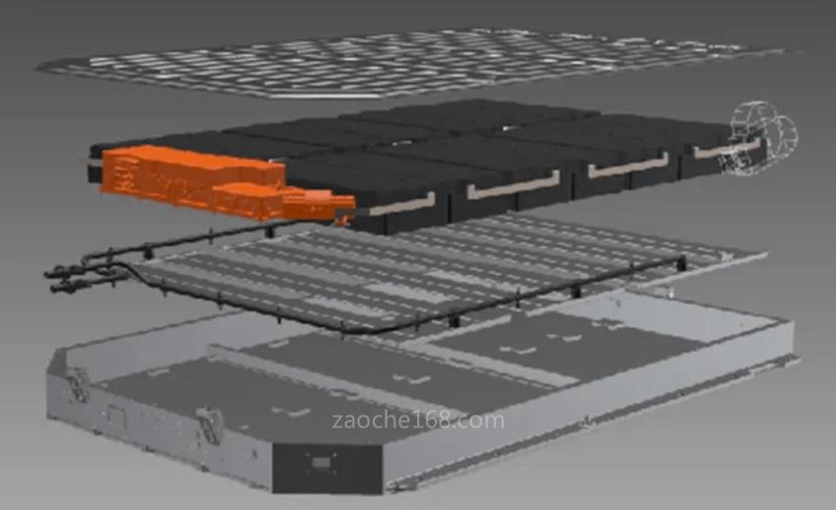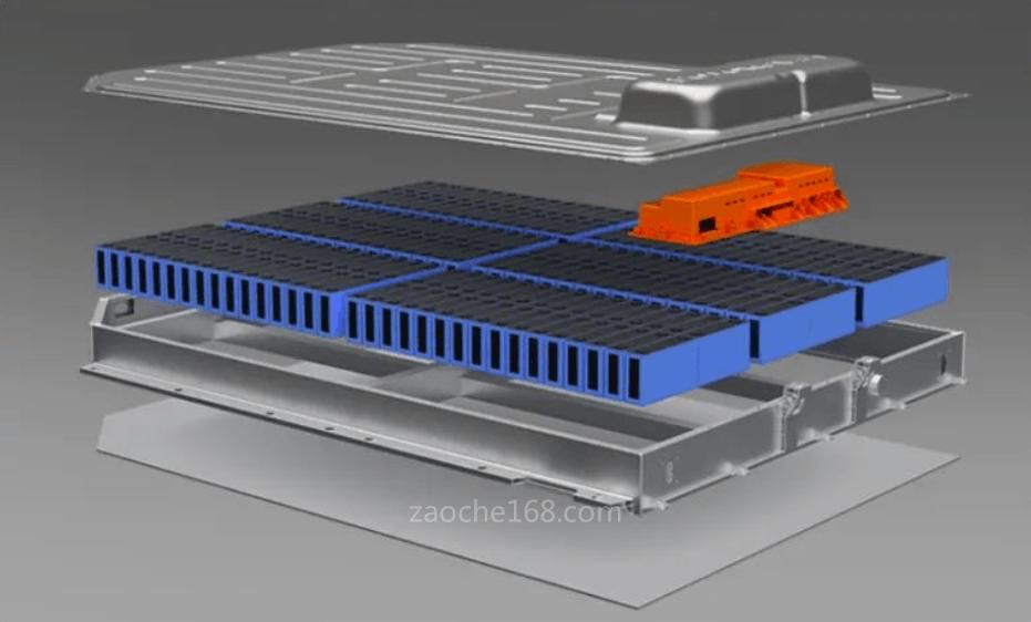 動力電池2.0時代(如上圖),采用CTP大模組,電池組體積利用率提升15%-20%,零件數量減了40%,簡化模組工藝,讓生產效率提升50%;缺點:由于CTP大模組電芯膠粘到電池包底盤,電芯損壞時返修難度大,不能像模組電池包,可定位特定模組進行單個模組的更換,售后維修性差。
